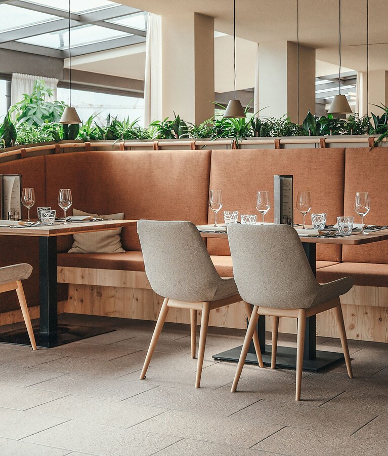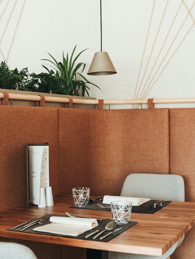 Nachhaltigkeit spielt bei uns eine wichtige Rolle und soll auch im Raum spürbar sein. Mit neuen Raumaufteilungen, gemütlicher Bestuhlung, einem größeren Buffetbereich und einem begehbaren Weinschrank direkt am Eingang ist ein stimmiges, einladendes Ambiente entstanden.
