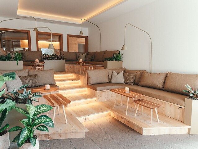 Ein echter Hingucker sind unsere zwei großen Holzbäume aus einheimischer Lärche, die unser Logo in 3D aufgreifen und dem Raum eine besondere Atmosphäre geben. Dazu kommen eine moderne Akustikdecke, angenehme Kühlung und ein stimmiges Lichtkonzept – alles für ein entspanntes Gefühl beim Ankommen und Verweilen.