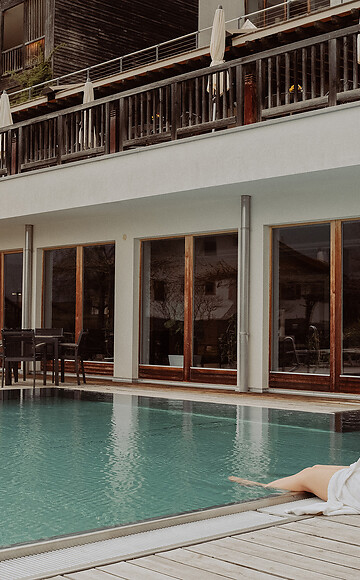 In unserem Day Spa-Hotel in Südtirol steht auch Tagesgästen der gesamte Wellnessbereich offen. Dazu gehören der verbundene Innen- und Außenpool (12 m bzw. 17 m), die weitläufige Gartenanlage, der Bewegungsraum inkl. Outdoor-Trainingsgeräte, der Saunabereich mit Finnischer Sauna, Biosauna und Dampfbad sowie die Kneipp-Anlage. Wenn Ihr Euren Tag noch mit einer Massage oder Behandlung vervollständigen wollt, beraten wir Euch gerne schon im vorab telefonisch oder per E-Mail.