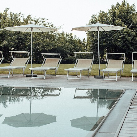 Nach dem Schwimmen könnt Ihr es Euch auf den Hängeliegen und Himmelbetten und weiteren kuscheligen Plätzen am Beckenrand gemütlich machen.