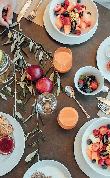 Da noi ogni momento della giornata è dedicato al gusto: dalla colazione alla cena, è tutto incluso. Svegliarsi è ancora più bello quando basta sedersi a una tavola imbandita. A metà giornata vi aspetta una pausa leggera e gustosa, mentre nel pomeriggio vi lasciate tentare da dolci fatti in casa. E la sera? Un raffinato menu gourmet bio, firmato dalla nostra cucina naturale. Durante il vostro soggiorno, potete semplicemente rilassarvi: a nutrirvi ci pensiamo noi!
